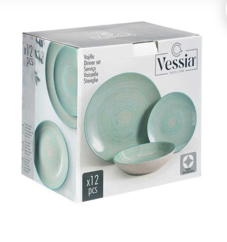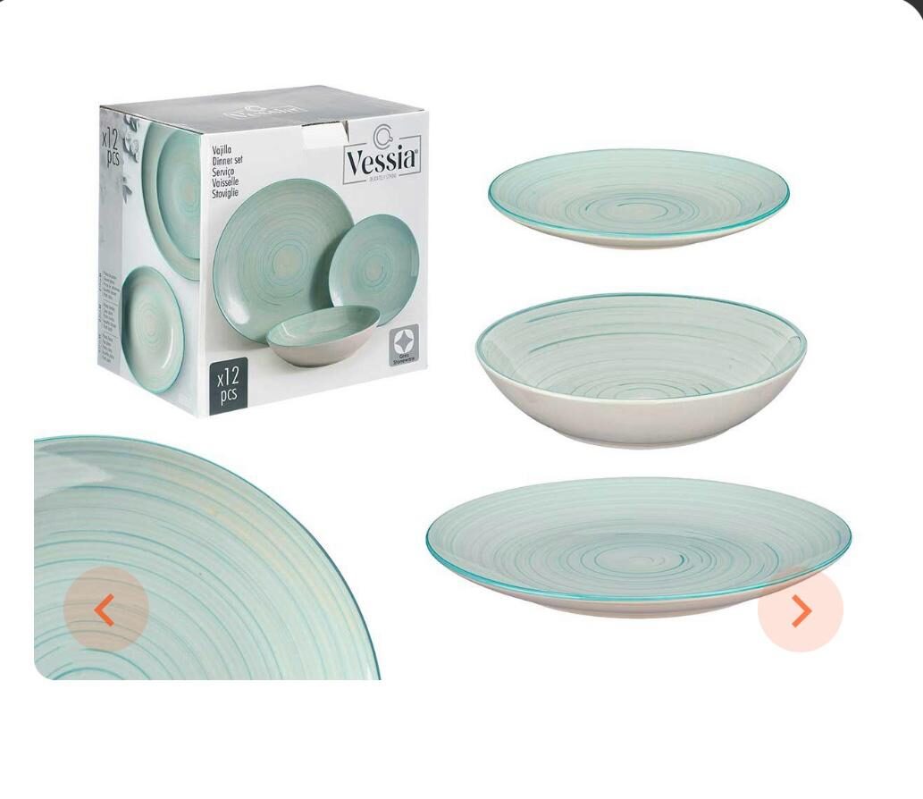 set vajilla 12PCS EN VARIOS COLORES para 4 comensales su material es de ceramica el pak se compone de 4 platos llanos de 27cm diam +4 platos dev postres 19cm diam +4 platos hondos 21 cm diam